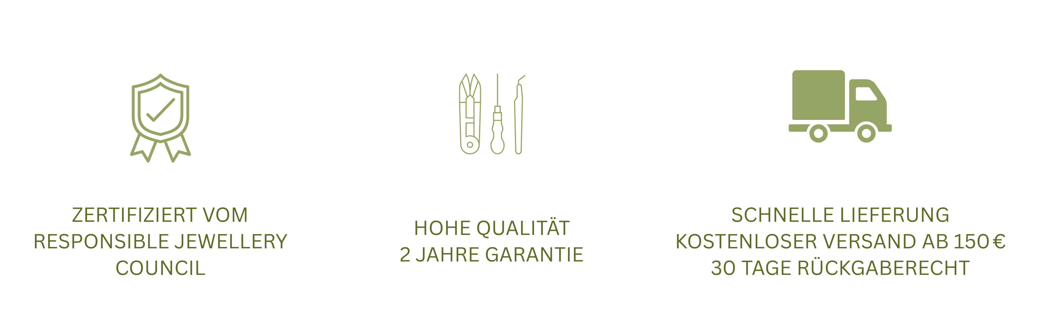 Unser Schmuck wird nur aus Materialien von höchster Qualität hergestellt – 18 Karat Gold-Vermeil, 18 Karat Massivgold, Perlen und Edelsteine, die für ihre zeitlose Schönheit bekannt sind. Jedes Stück wird unter der Zertifizierung des Responsible Jewellery Council gefertigt, um verantwortungsvolle Praktiken entlang der gesamten Lieferkette zu gewährleisten.