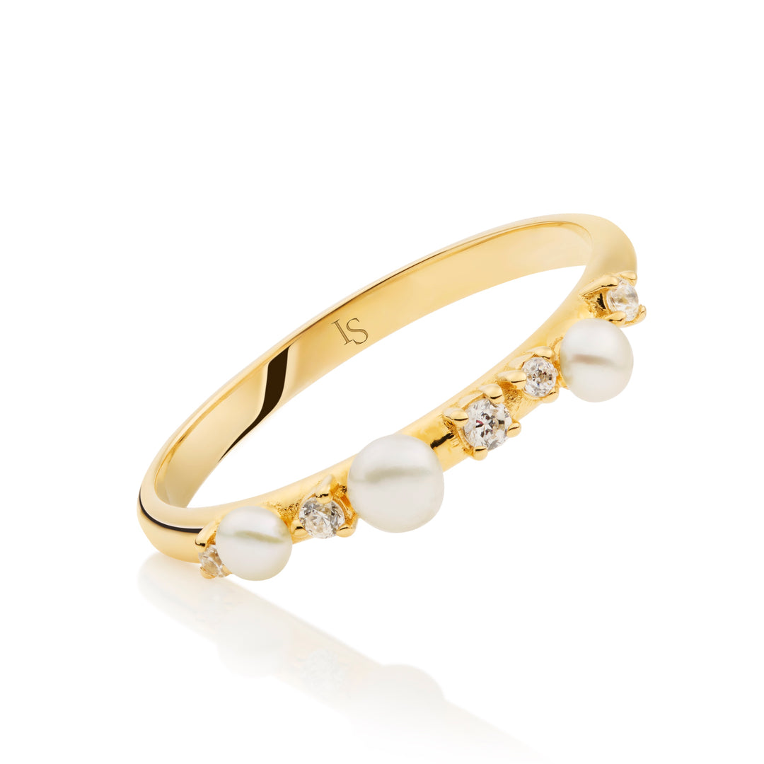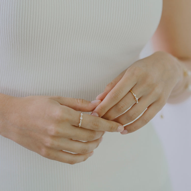 Thoughtfully designed featuring a selection of carefully selected freshwater pearls embraced by sparkling white topaz gems. With its graceful design, this ring ads a touch of glamour to any occasion.